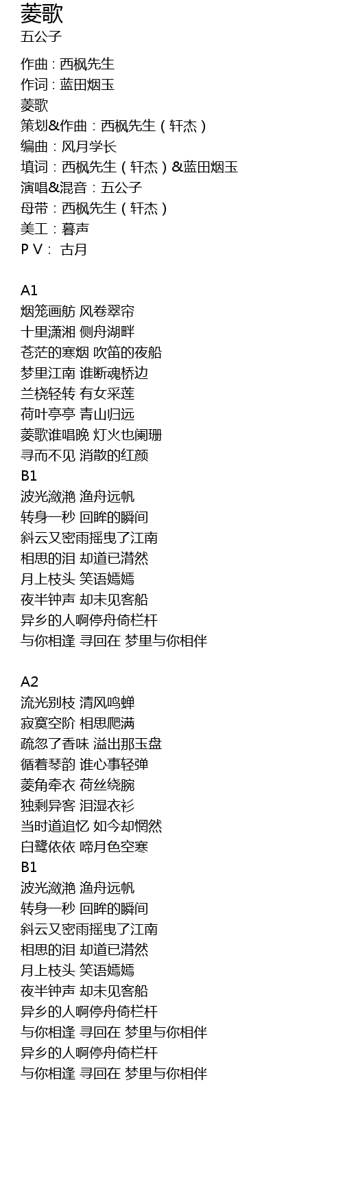 | 填词:西枫先生(轩杰)&蓝田烟玉 | |