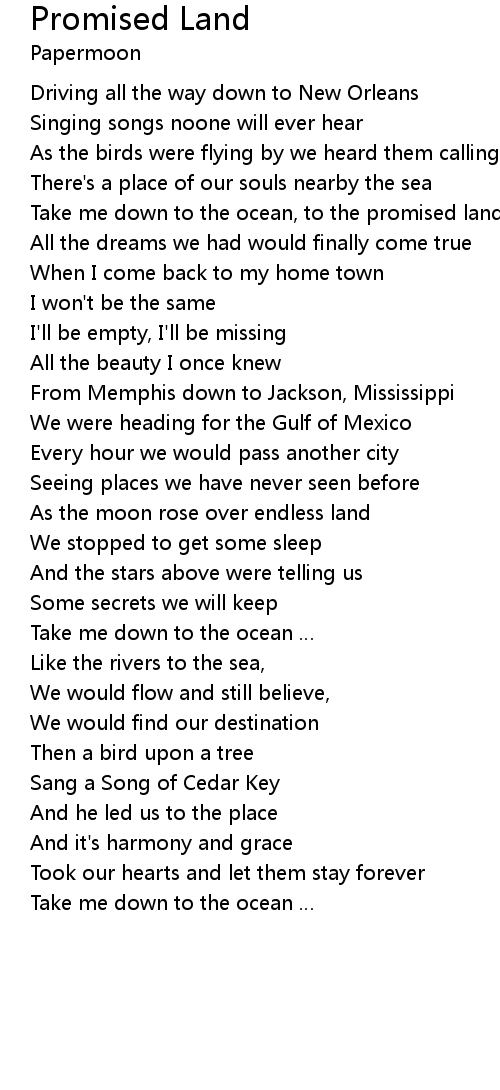 | Take me down to the ocean, to the promised land | |
