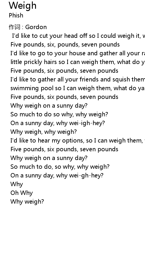 | I'd like to cut your head off so I could weigh it, what do ya say? | |