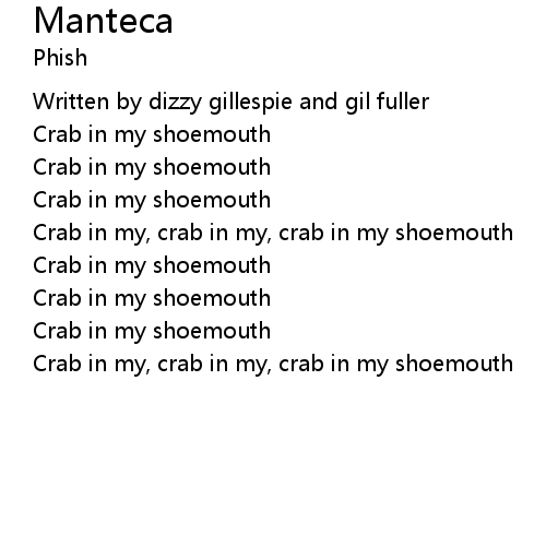 | Crab in my, crab in my, crab in my shoemouth | |