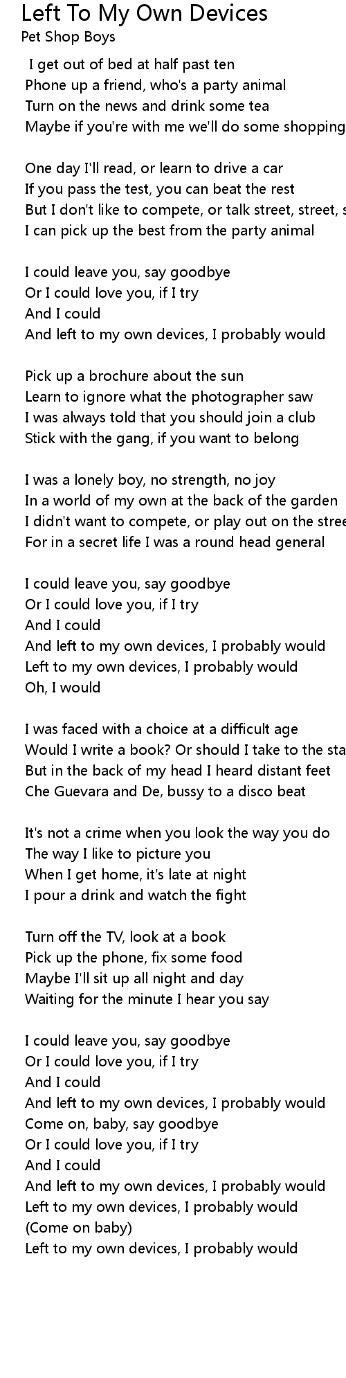 | 歌曲 | Left To My Own Devices |