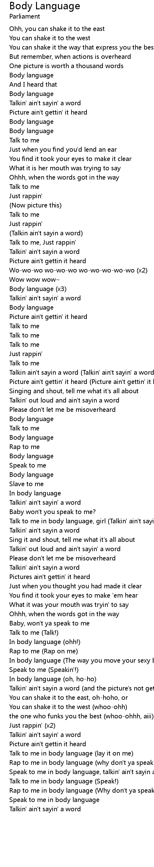 Talk to me in body language, girl (Talkin' ain't sayin a word) |