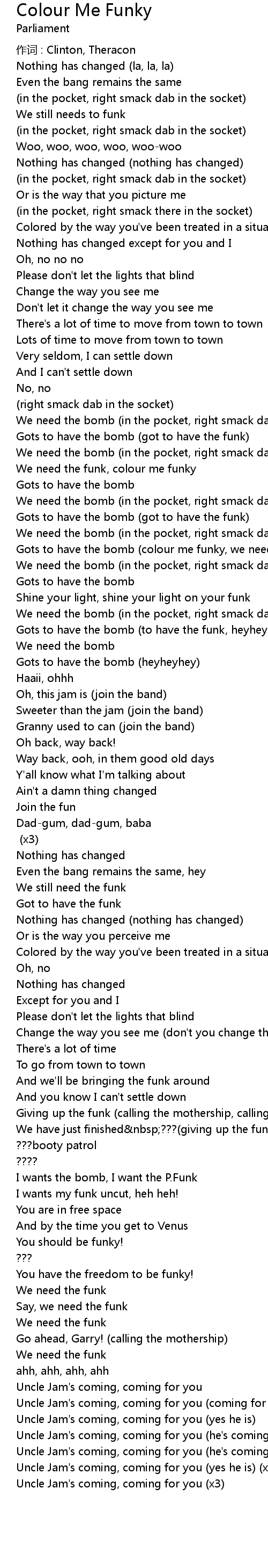 | Giving up the funk (calling the mothership, calling the mothership) (x2) | |