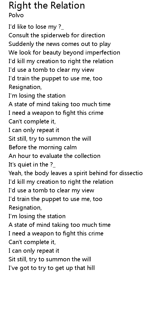 | I' d kill my creation to right the relation | |