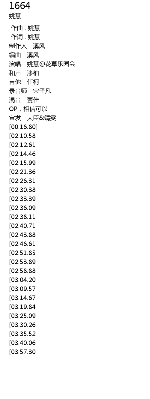 | [00:09.17] | 演唱:姚慧@花草乐园会 |