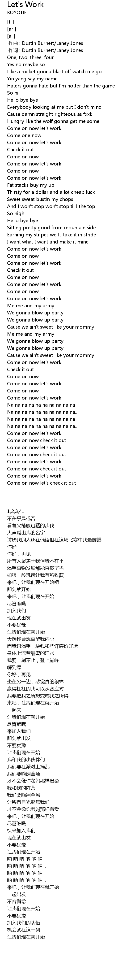 | [00:38.74] | Come on now let' s work |