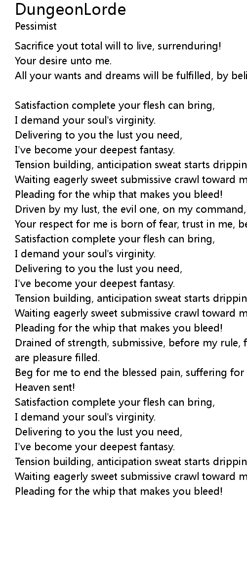 Drained of strength, submissive, before my rule, fear consumes, but your cries are pleasure filled. |