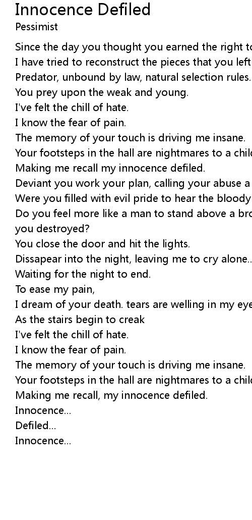 Making me recall, my innocence defiled. |
