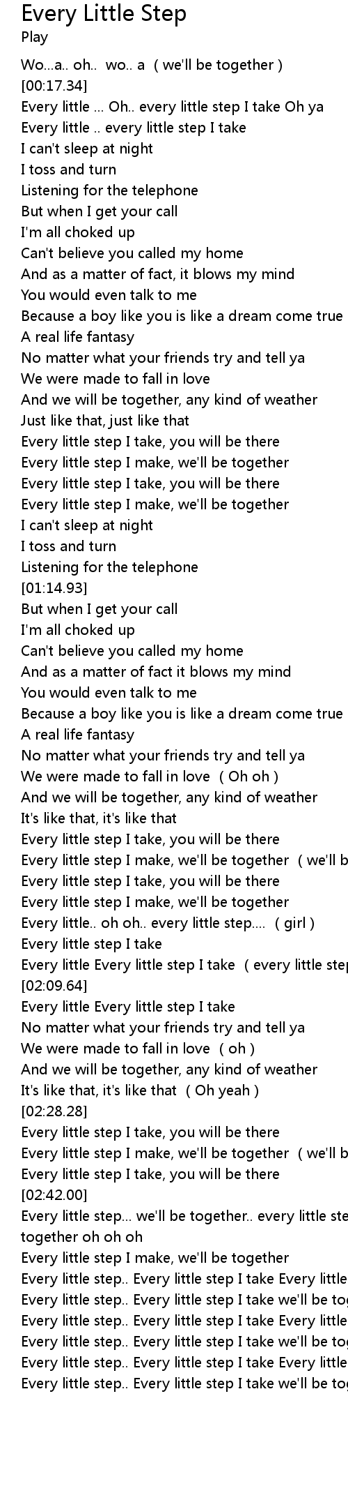 | [03:12.61] | Every little step.. Every little step I take we' ll be together |