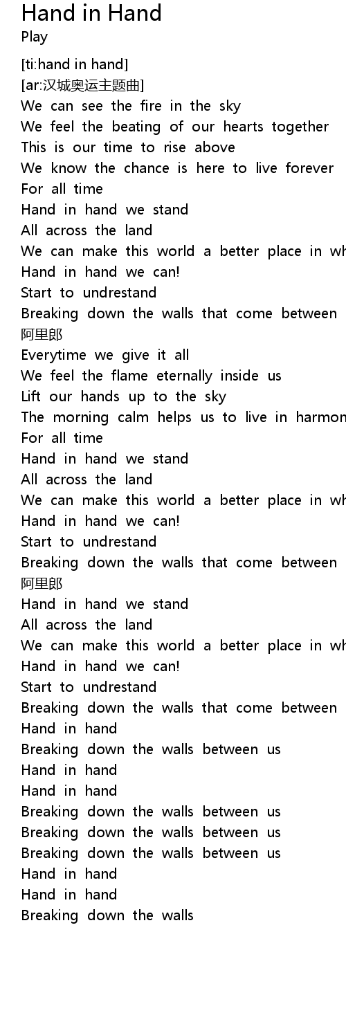 | [04:11.185] | Breaking down the walls that come between us for all time |