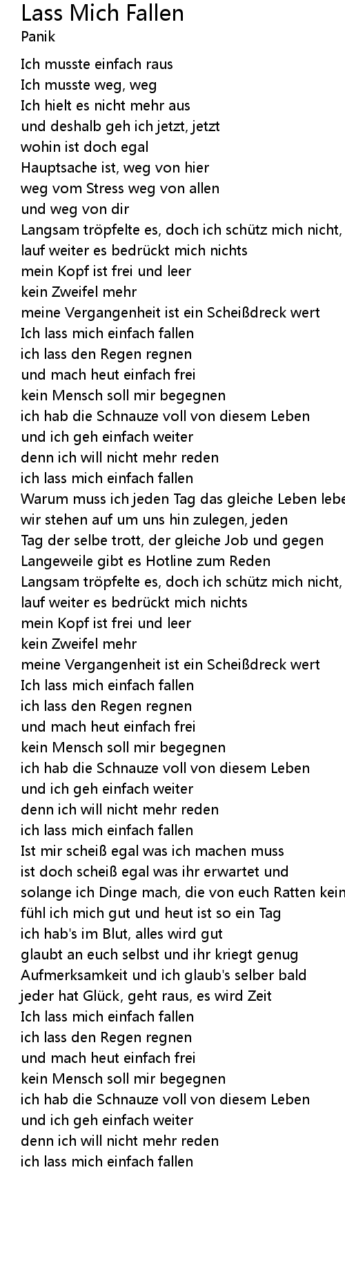| Langsam tr pfelte es, doch ich schü tz mich nicht, ich | |
