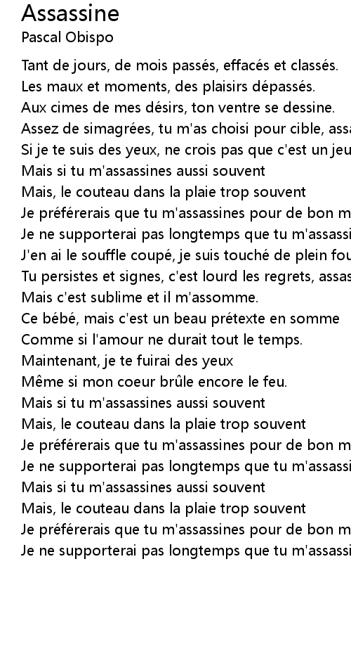 | Mais si tu m' assassines aussi souvent | |