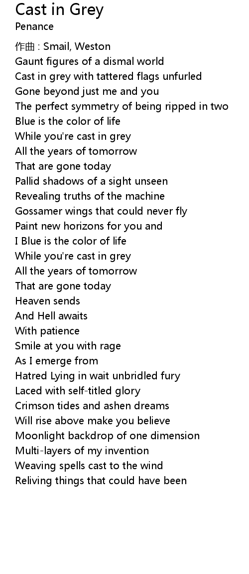 | 歌曲 | Cast in Grey |