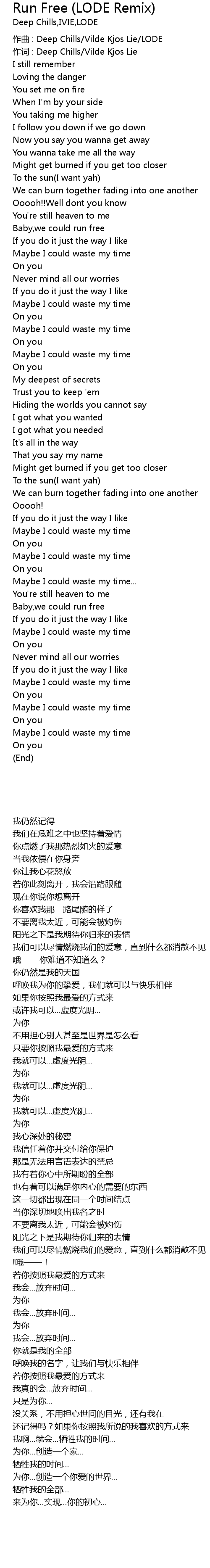 | [00:00.40] | 作词 : Deep Chills/Vilde Kjos Lie |