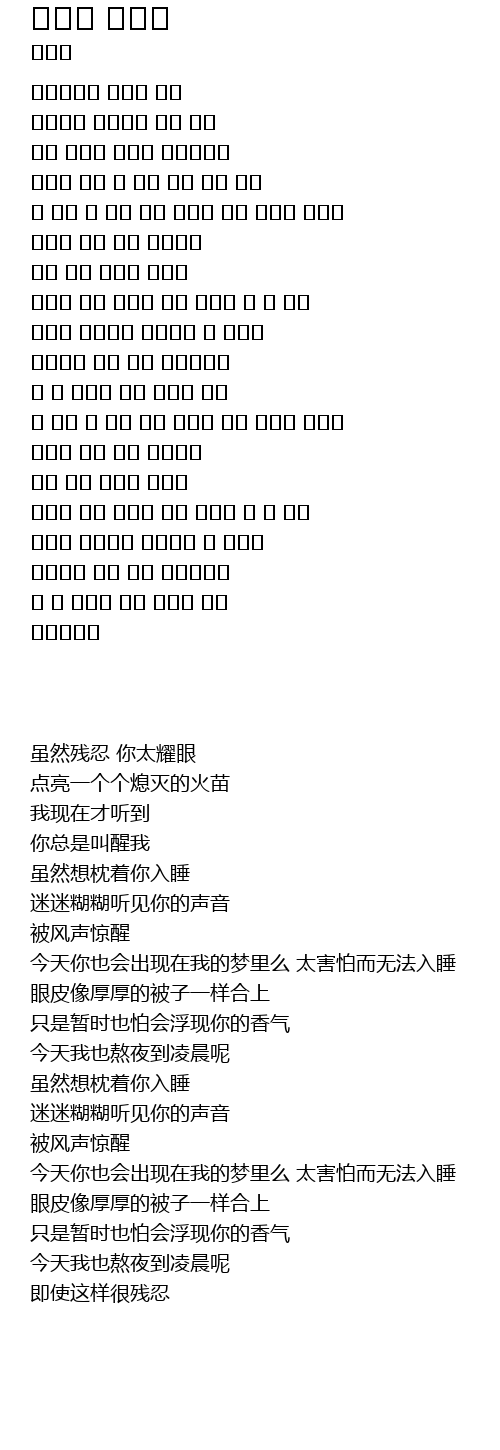 | [02:39.929] | 今天你也会出现在我的梦里么 太害怕而无法入睡 |