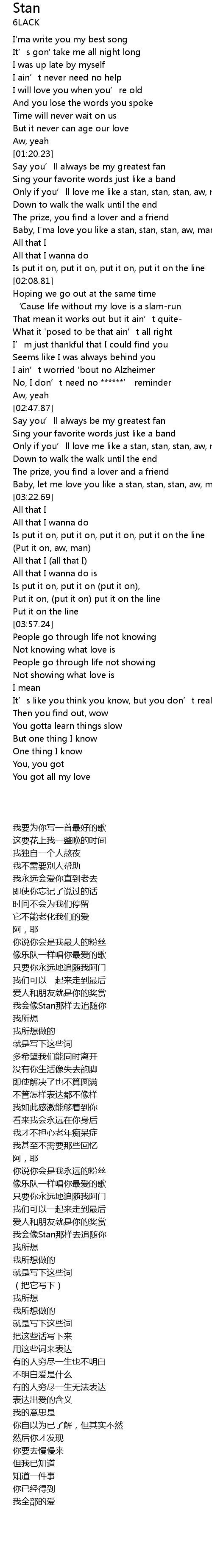 | [03:15.04] | Baby, let me love you like a stan, stan, stan, aw, man |
