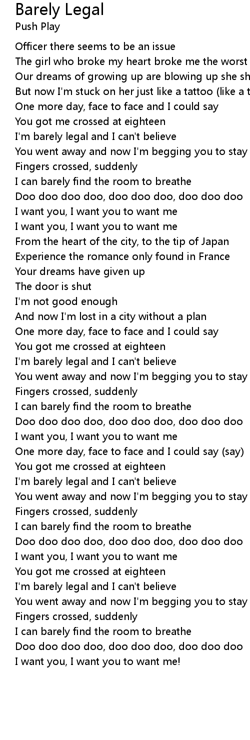 | I'm barely legal and I can't believe | |