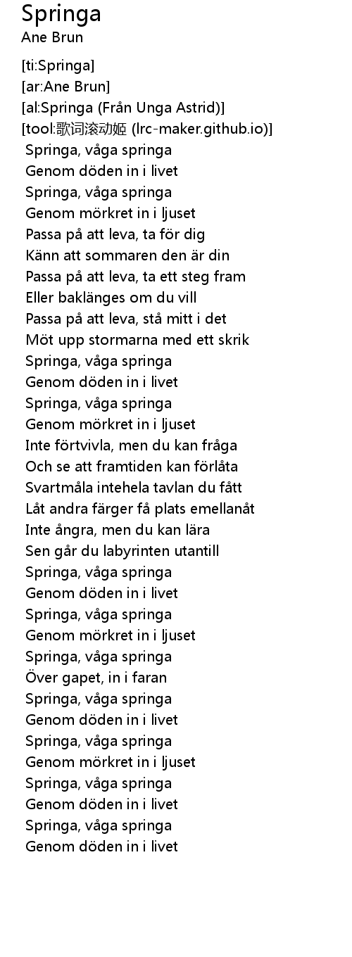 | [00:47.907] | Passa på att leva, ta ett steg fram |