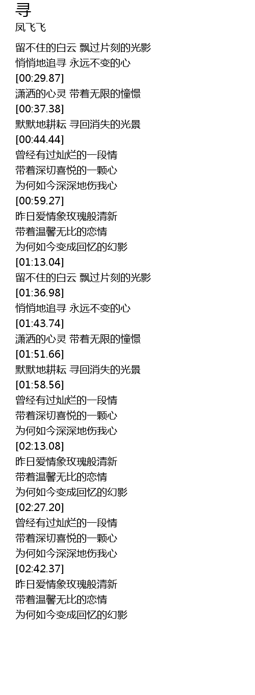 | [01:38.18] | 悄悄地追寻 永远不变的心 |