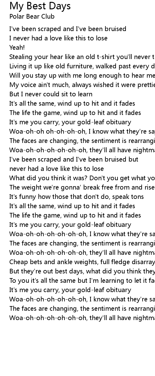 Woa-oh-oh-oh-oh-oh-oh, they'll all have nightmares about me on my best days. |