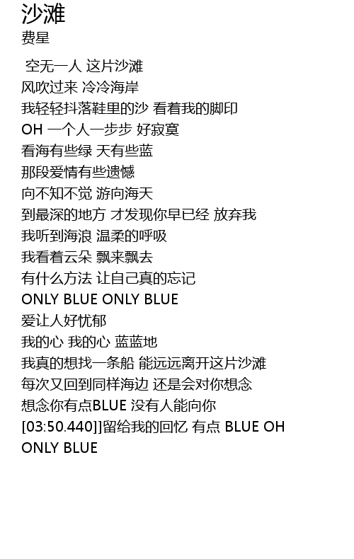 | [03:13.290] | 我真的想找一条船 能远远离开这片沙滩 |