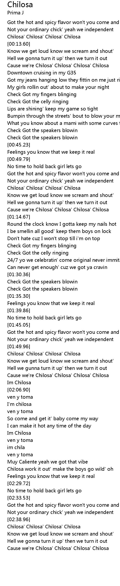 | [00:59.35] | Chilosa' Chilosa' Chilosa' Chilosa |