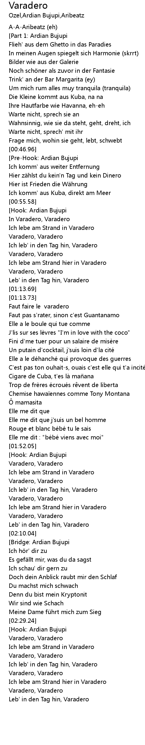| [02:01.35] | Varadero, Varadero |