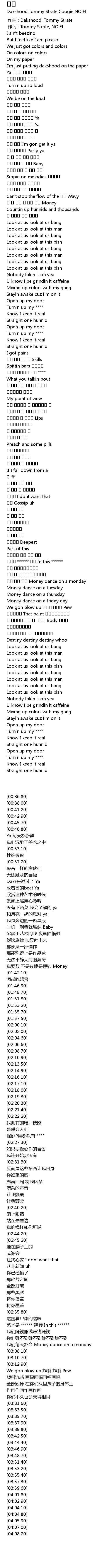| [00:00.000] | 作曲 : Dakshood, Tommy Strate |