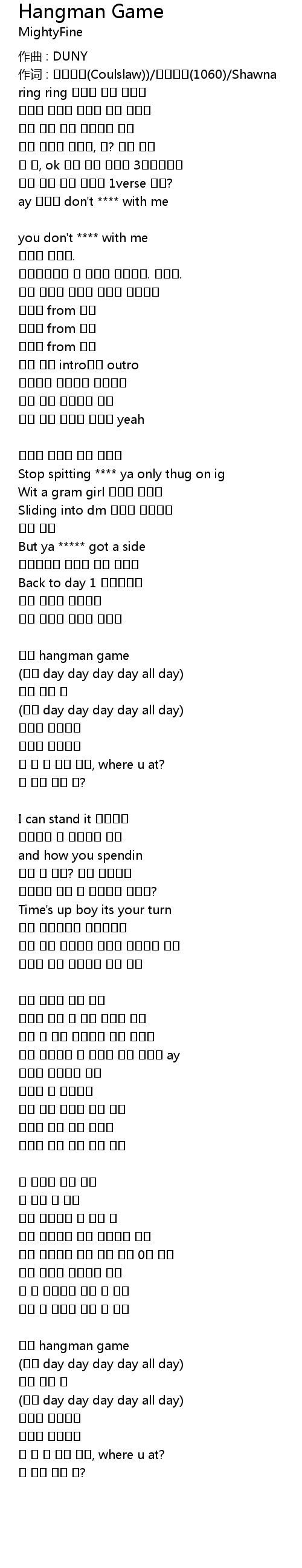 Hangman Game 歌词