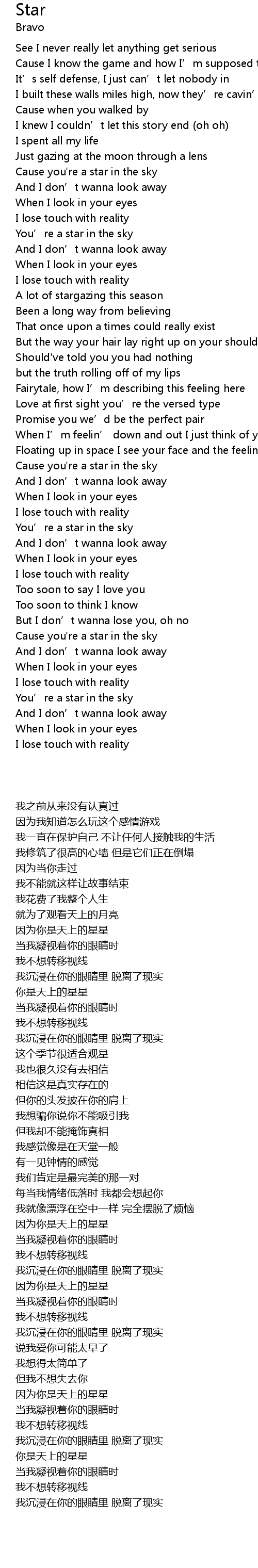 | [00:42.74] | Cause you're a star in the sky |