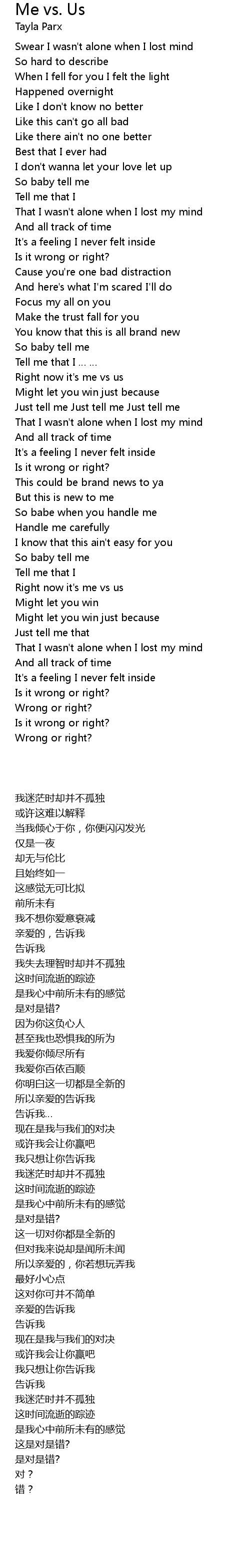 | 歌曲 | Me vs. Us |