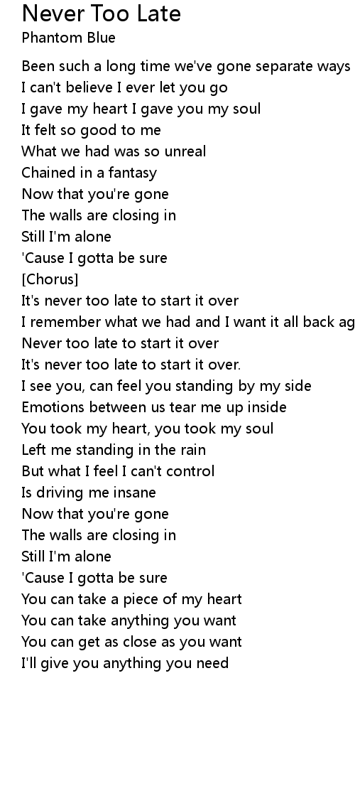 Never too late to start it over |