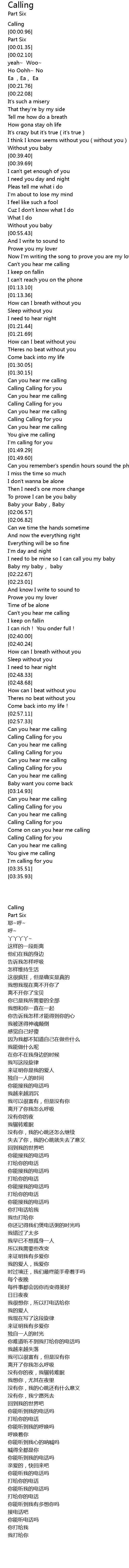 | [01:36.50] | Calling Calling for you |