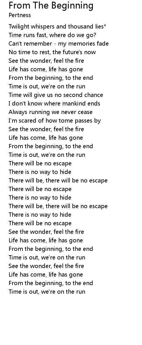 From the beginning, to the end |