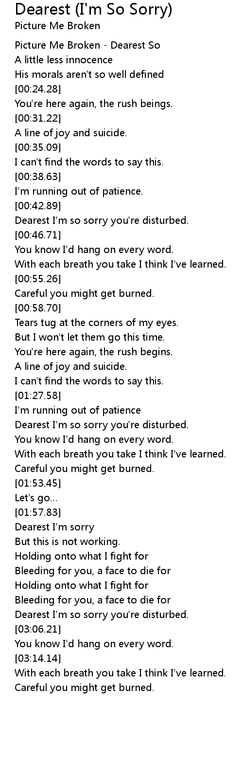 | [00:00.82] | Picture Me Broken - Dearest So |