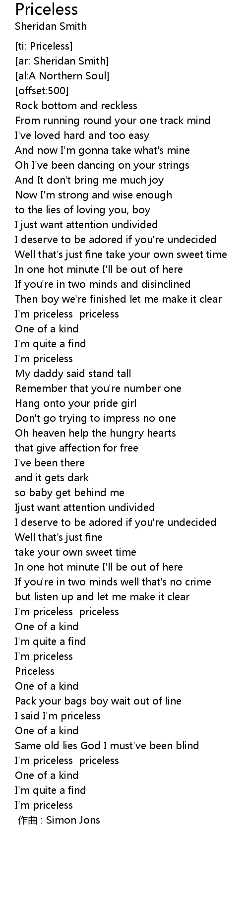 | [ti: Priceless] | |