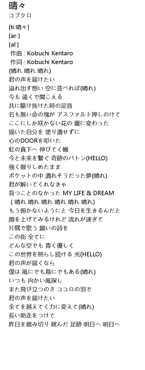 | [00:01.000] | zuo ci : Kobuchi Kentaro |