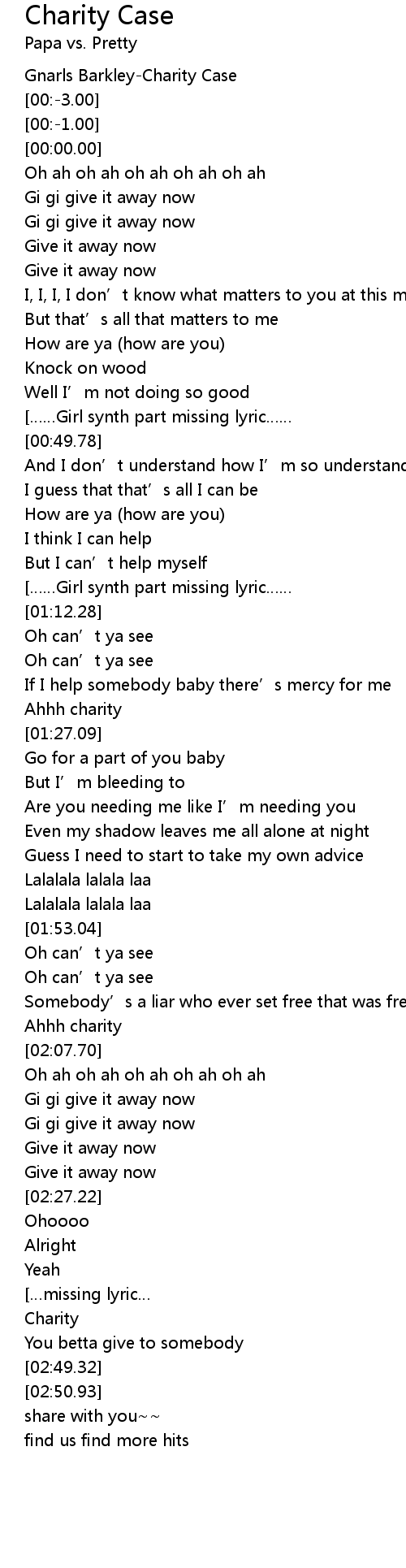 | [02:22.62] | Give it away now |