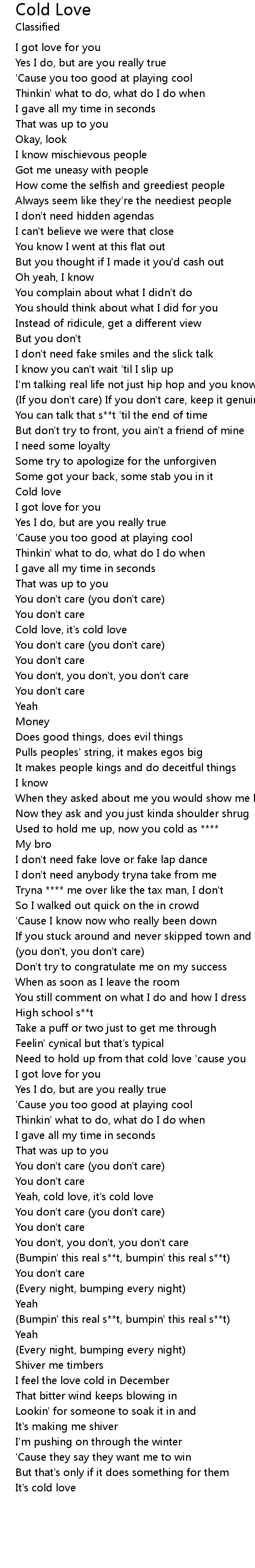 歌曲 Cold Love