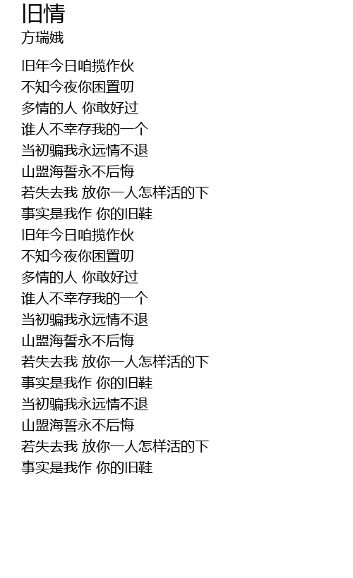 | [03:50.290] | 事实是我作 你的旧鞋 |