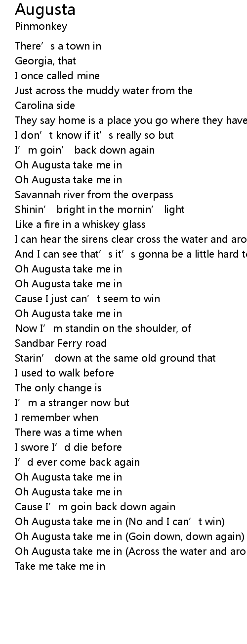 | Oh Augusta take me in No and I can' t win | |