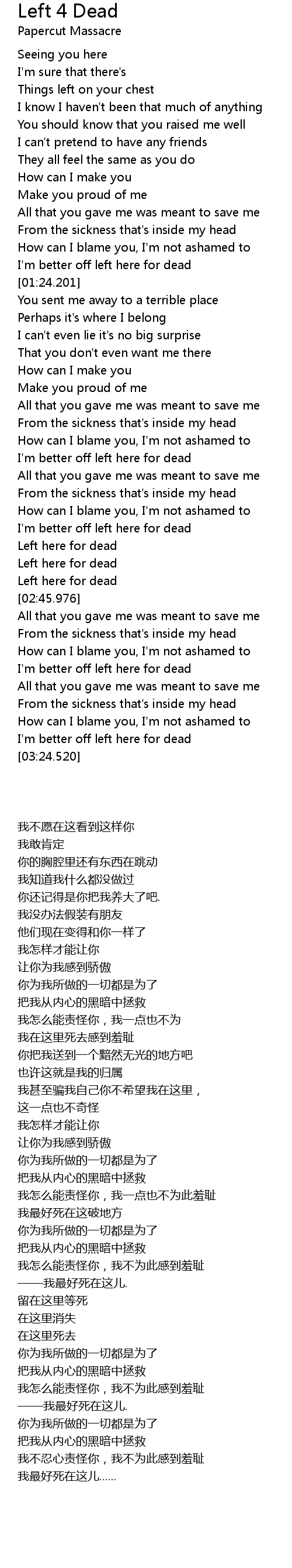 I'm better off left here for dead |