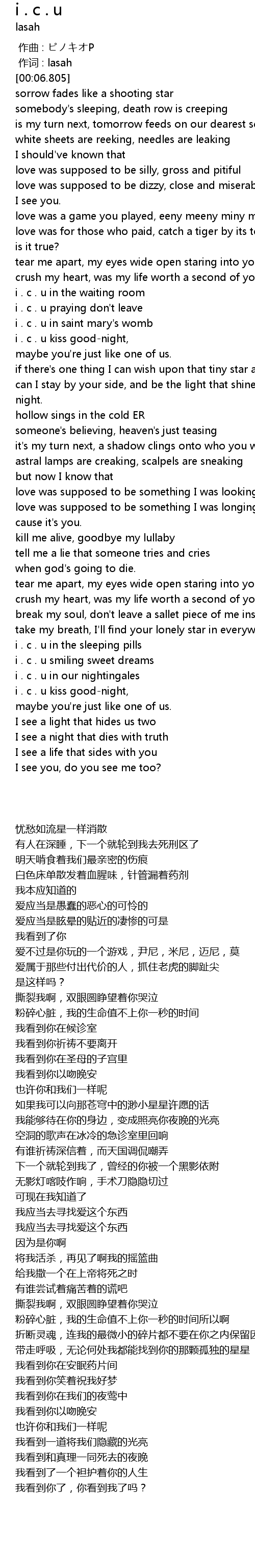 | [03:22.410] | i . c . u in the sleeping pills |