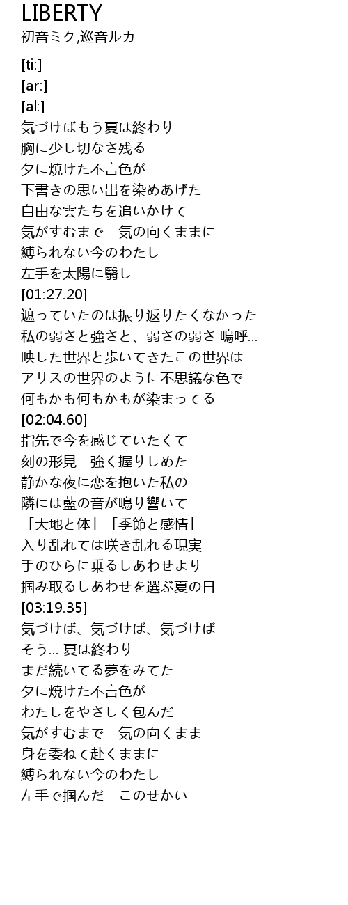 | [03:09.54] | 掴み取るしあわせを選ぶ夏の日 |