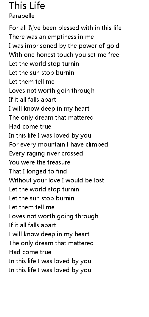 | [02:28.84] | In this life I was loved by you |