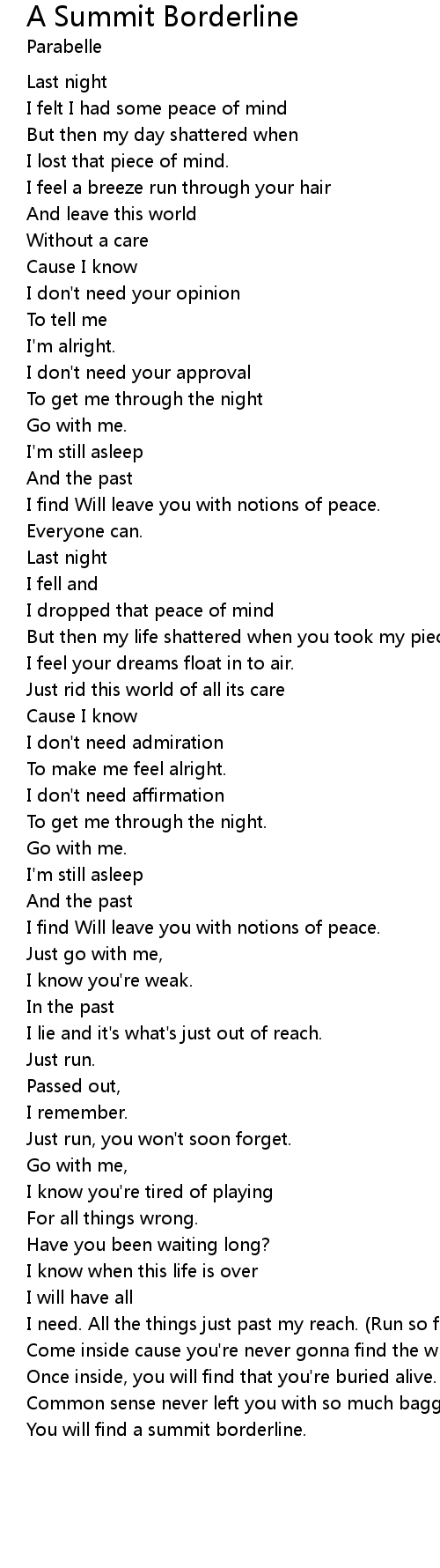 I dropped that peace of mind |