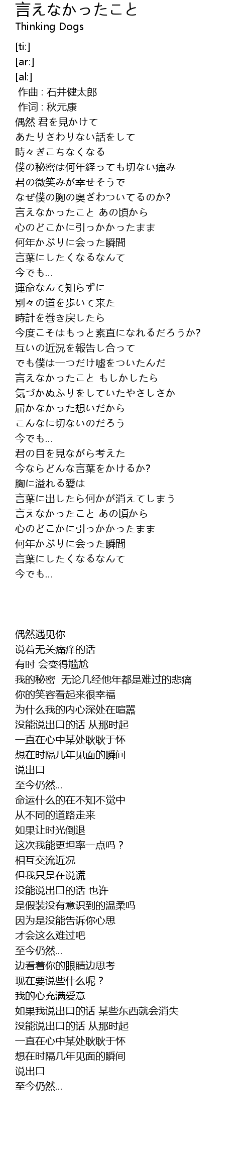 | [00:49.30] | 言えなかったこと あの頃から |