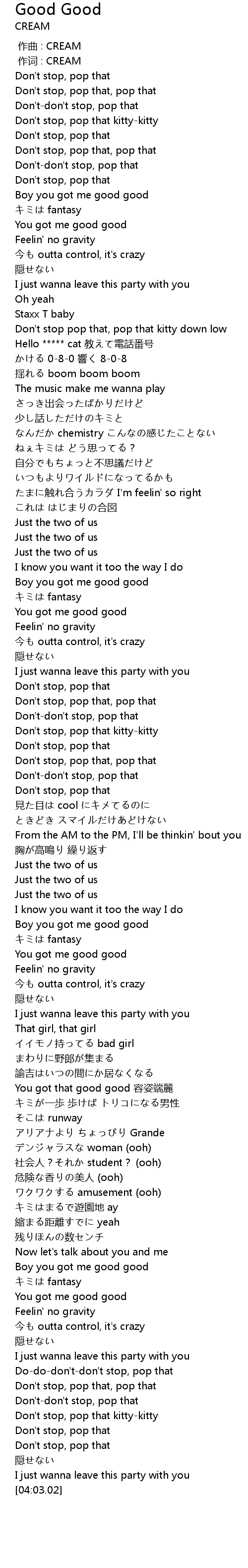 | [03:54.55] | Don't stop, pop that |