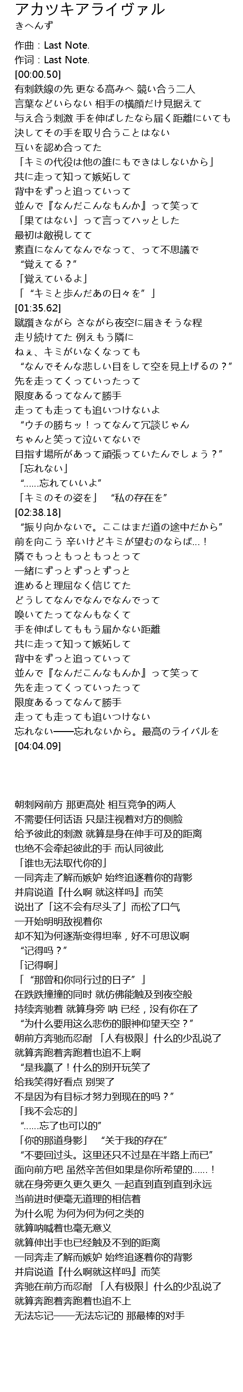 | [00:00.05] | 作词:Last Note. |