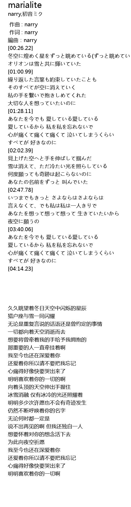 | [00:38.87] | 冬空に煌めく星をずっと眺めている(ずっと眺めている) |